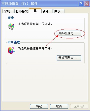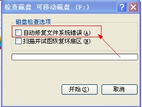 在u盤(pán)圖標(biāo)上鼠標(biāo)右擊,選擇“屬性”“工具”“開(kāi)始檢查“勾選”自動(dòng)修復(fù)文件系統(tǒng)錯(cuò)誤“,點(diǎn)擊“開(kāi)始”很快修復(fù)完畢就可以了。大家可以試試。