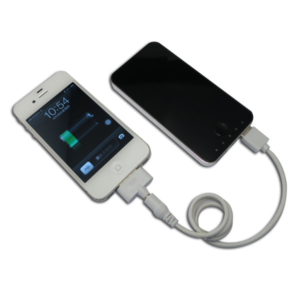1)把數(shù)據(jù)線的USB端口連接至移動電源輸出端口。