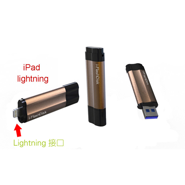 這款U盤(pán),外置亮眼的土豪金,擁有蘋(píng)果5pin接口,適用于ipad平板電腦,有32GB與64GB容量可選。USB3.0的接口可滿(mǎn)足發(fā)燒友們對(duì)于速度的追求。