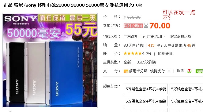 網(wǎng)購已成為一種時尚,而網(wǎng)上價格站打的非常激烈,很多移動電源品牌產(chǎn)品也不得不壓低自己的價格來博得消費者的青睞。暴利多銷,成本低廉等等因素使得網(wǎng)絡(luò)成為了各種各樣商家必爭之道。不過消費者那邊的反應(yīng)一直都不怎么好。相當(dāng)一部分網(wǎng)友在購買過程中碰到假冒劣質(zhì)問題。手機移動電源的假象也是讓我們這些專業(yè)人士爭相吐槽。各種奇葩卻能在淘寶網(wǎng)上賣的好。