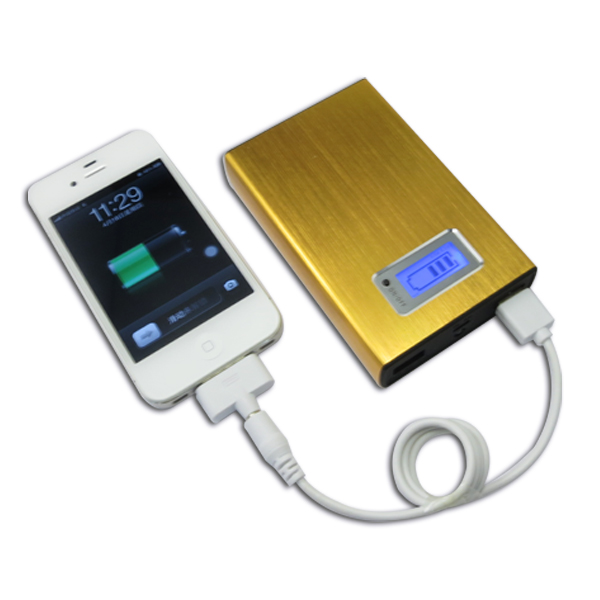 土豪金移動電源輸入端為Micro USB接口,內(nèi)置11200mAh可充電鋰電池;2個標準USB輸出端,分別為1A和2.1A,可滿足市面上有不同充電需求的數(shù)碼產(chǎn)品。輸出具有恒壓限流功能,輸出短路保護功能。產(chǎn)品內(nèi)置中央微處理器(MCU),智能控制充電和電量輸出,藍色背光 LCD 顯示屏可實時顯示產(chǎn)品電量和端口狀態(tài)。并配置高亮 LED 手電筒提供照明功能。移動電源針對手機、iPhone手機、平板電腦、MP3、MP4、PSP等移動數(shù)碼產(chǎn)品充電之用。