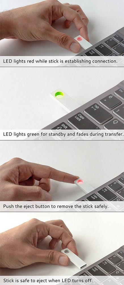 這款U盤是由一位名叫Ahmet Burak Aktas的網(wǎng)友設(shè)計(jì)。其外形看起來跟普通U盤相差不大,但是尾部處有一個(gè)按鈕,使用完之后,按一下就可以從電腦彈出,直接就可以拔掉。