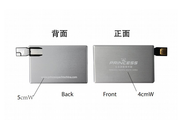 英國(guó)著名游艇制造商“公主游艇Princess”是豪華游艇業(yè)的內(nèi)世界最知名企業(yè)之一,其產(chǎn)品行銷歐美各大國(guó)家及城市。2013年3月30日-4月2日,在中國(guó)三亞的熱帶海濱舉行的廣受歡迎的年度豪華游艇狂歡PARTY”海天盛筵”,吸引了無(wú)數(shù)知名游艇和奢侈品品牌的到來(lái),Princess公主游艇南中國(guó),登錄2013海南“海天盛筵”豪華游艇展,在華萬(wàn)達(dá)u盤工廠定制的一批金屬卡片u盤也將在此次活動(dòng)排上用場(chǎng)??ㄆ瑑擅娌捎描D射激光logo工藝,與客戶的大氣奢華的品牌宗旨交相輝映,u盤接口流暢滑行推出如游艇行駛在海面,卡片u盤內(nèi)部預(yù)存了客戶游艇的相關(guān)介紹及游艇展的相關(guān)事件介紹,真正做到展會(huì)結(jié)束了廣告還在繼續(xù),花一次錢做三到五年的廣告。