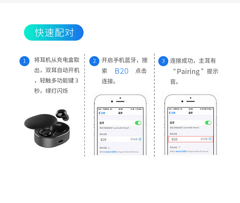 - B20-TWS真無線耳機(jī)5.0 無線雙耳降噪運(yùn)動對耳耳機(jī)